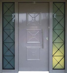 Μία θωρακισμένη πόρτα ασφαλείας κατασκευάζεται από σκληρά, βαριά, ανθεκτικά υλικά ώστε να σας προστατεύει από κάθε κίνδυνο. Εσωτερικά αποτελείται από μεταλλικό σώμα και μεταλλική κάσα. Εξωτερικά αυτών των στοιχείων γίνεται επίστρωση υλικών ώστε να αποκτήσει η πόρτα την επιθυμητή εξωτερική εμφάνιση. Σε χρώμα και σχέδιο. Γιατί στόχος μας δεν είναι μόνο η προστασία σας αλλά και η υψηλή αισθητική του κτιρίου σας.